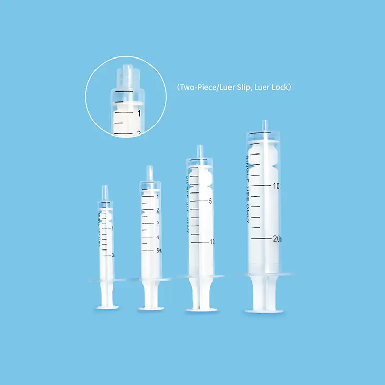 2-Part disposable syringe is composed of a barrel and plunger only, with no gasket. This type of syringe is typically less expensive than 3-part syringes and is often used in low-risk applications, such as administering oral medications. The absence of a gasket in 2-part syringes means there is a slightly higher risk of fluid leakage during injection, but this risk can be minimized by ensuring the plunger is pushed in smoothly and evenly.