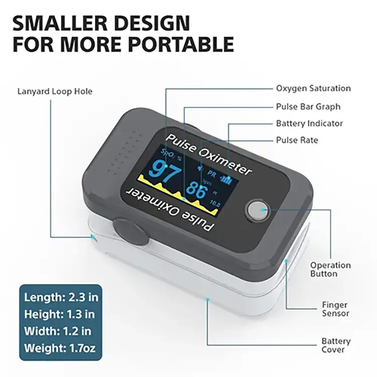 Pulse Oximeter adopts Photoelectric Oxyhemoglobin Inspection Technology integrated with Capacity Pulse Scanning & Recording Technology, which can be used to measure human oxygen saturation and pulse rate through finger.
